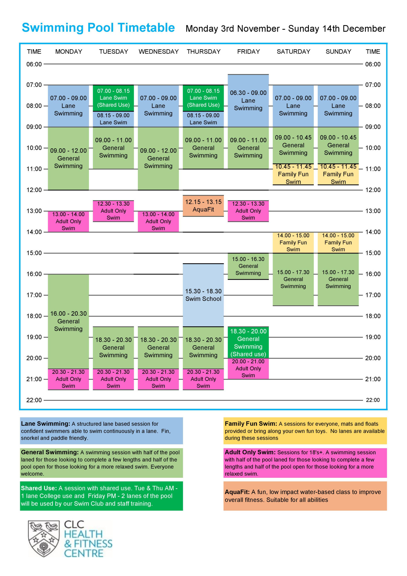 Please see below our autumn term swimming timetable which will run from 3rd November - 14th December.